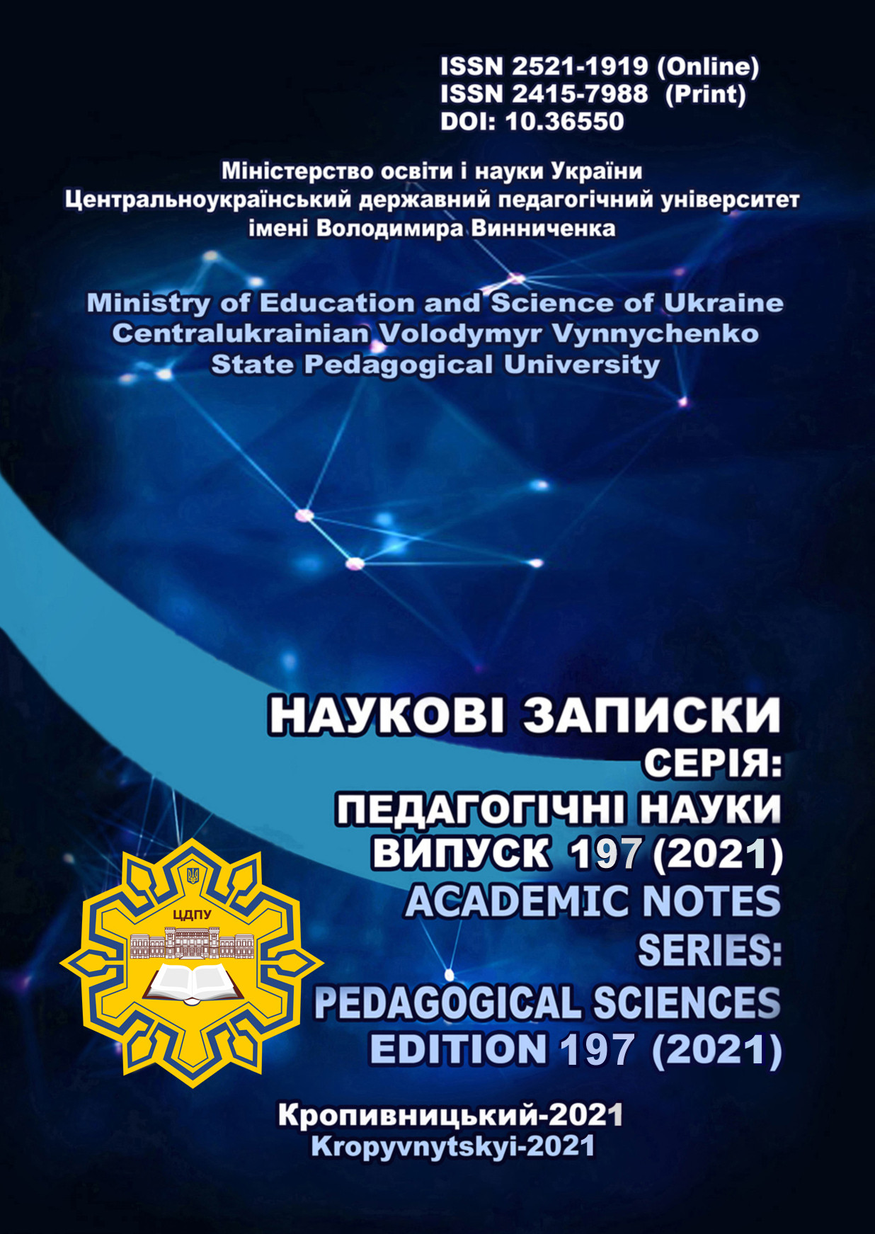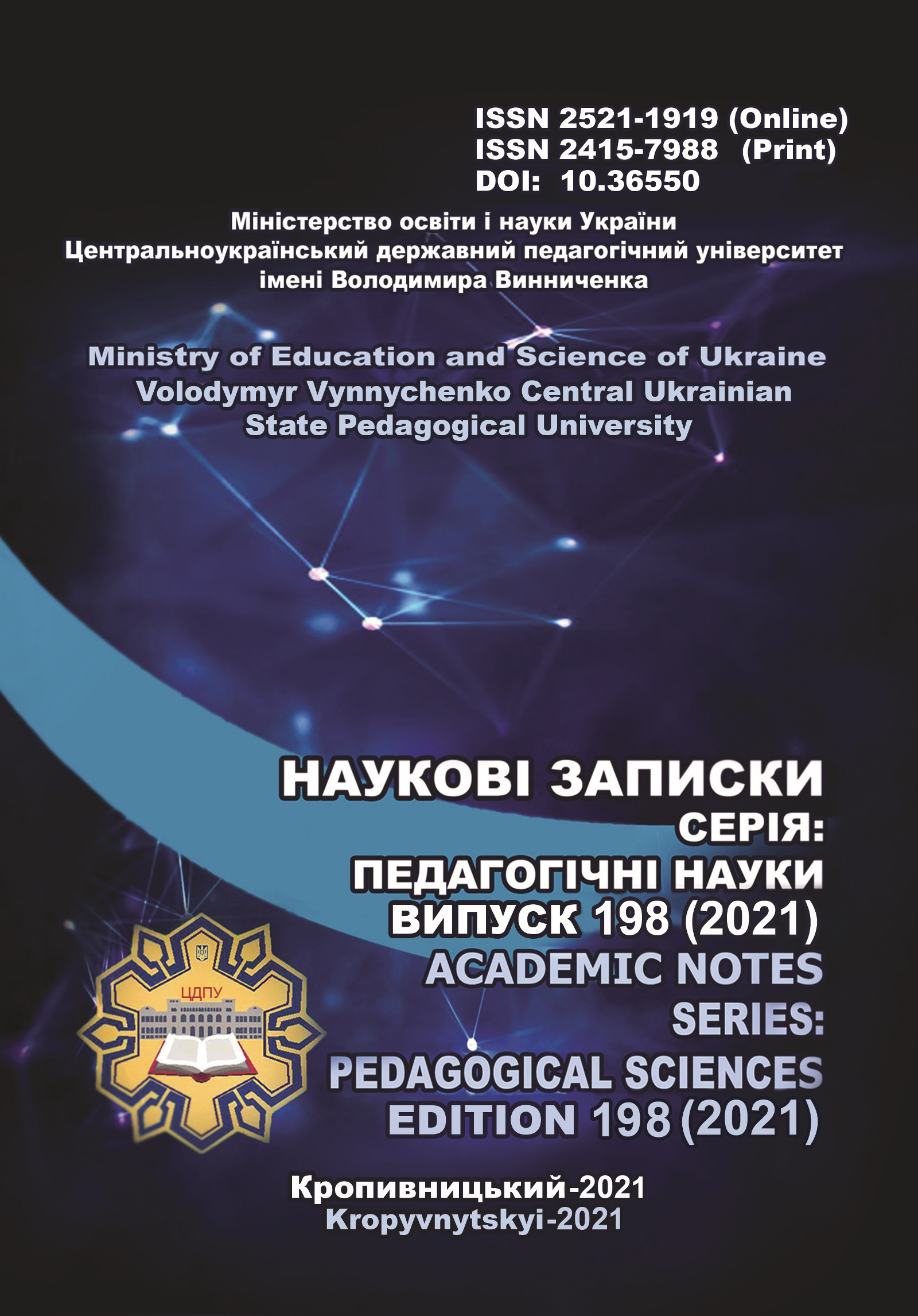 № 197 (2021)«Наукові записки. Серія: Педагогічні науки» включено до Переліку наукових фахових видань України категорії «Б» (галузь знань: Освіта/Педагогіка), згідно з Наказом Міністерства освіти і науки України № 886 від 02.07.2020.