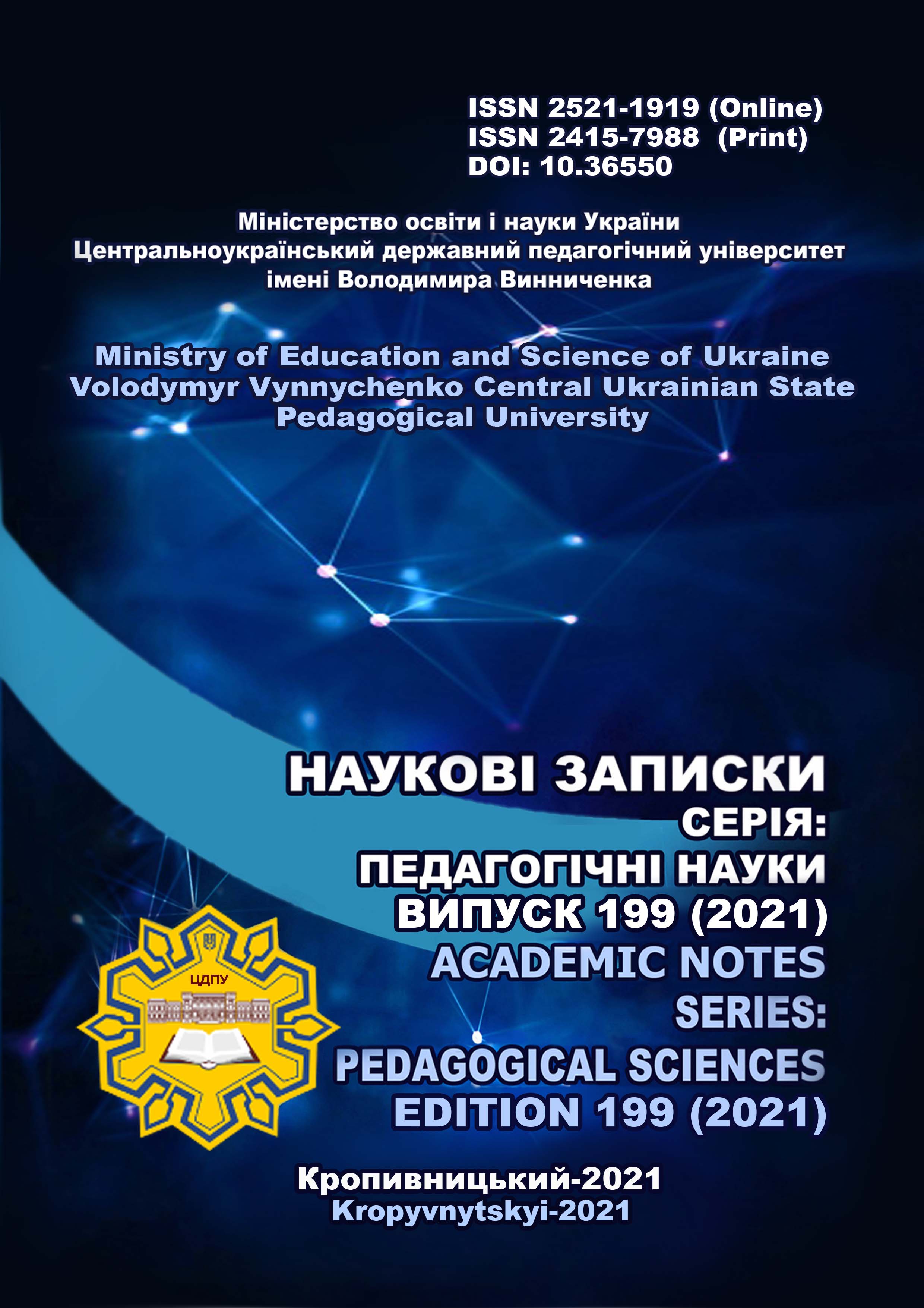 № 199 (2021)«Наукові записки. Серія: Педагогічні науки» включено до Переліку наукових фахових видань України категорії «Б» (галузь знань: Освіта/Педагогіка), згідно з Наказом Міністерства освіти і науки України № 886 від 02.07.2020.