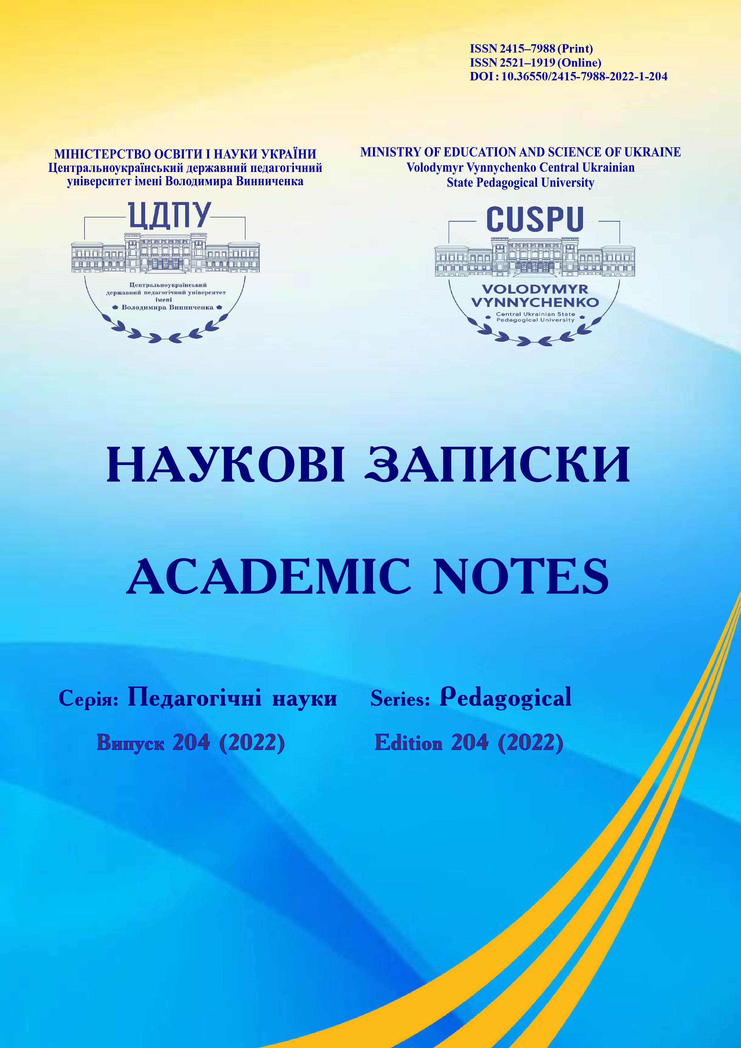 № 204 (2022)«Наукові записки. Серія: Педагогічні науки» включено до Переліку наукових фахових видань України категорії «Б» (галузь знань: Освіта/Педагогіка), згідно з Наказом Міністерства освіти і науки України № 886 від 02.07.2020.