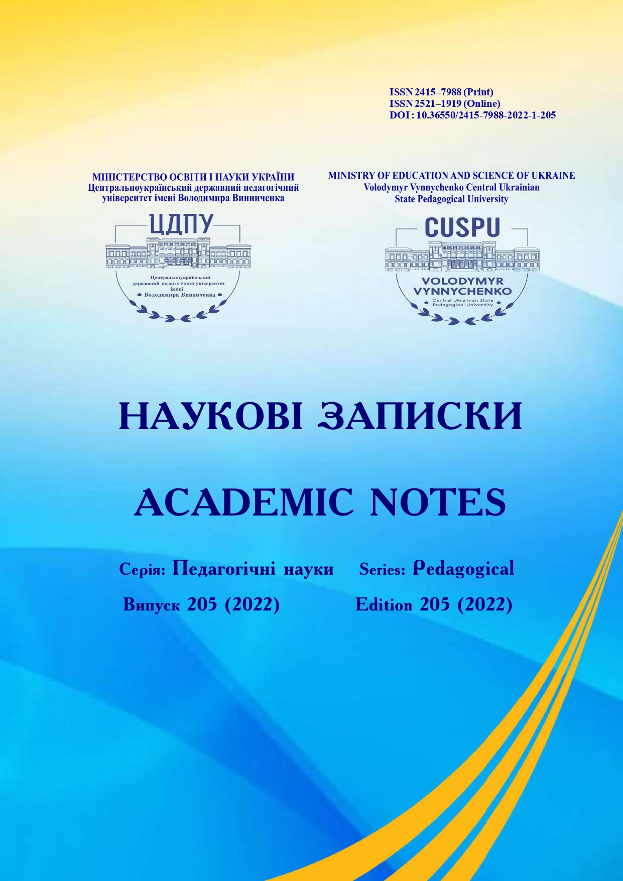 № 205 (2022)«Наукові записки. Серія: Педагогічні науки» включено до Переліку наукових фахових видань України категорії «Б» (галузь знань: Освіта/Педагогіка), згідно з Наказом Міністерства освіти і науки України № 886 від 02.07.2020.