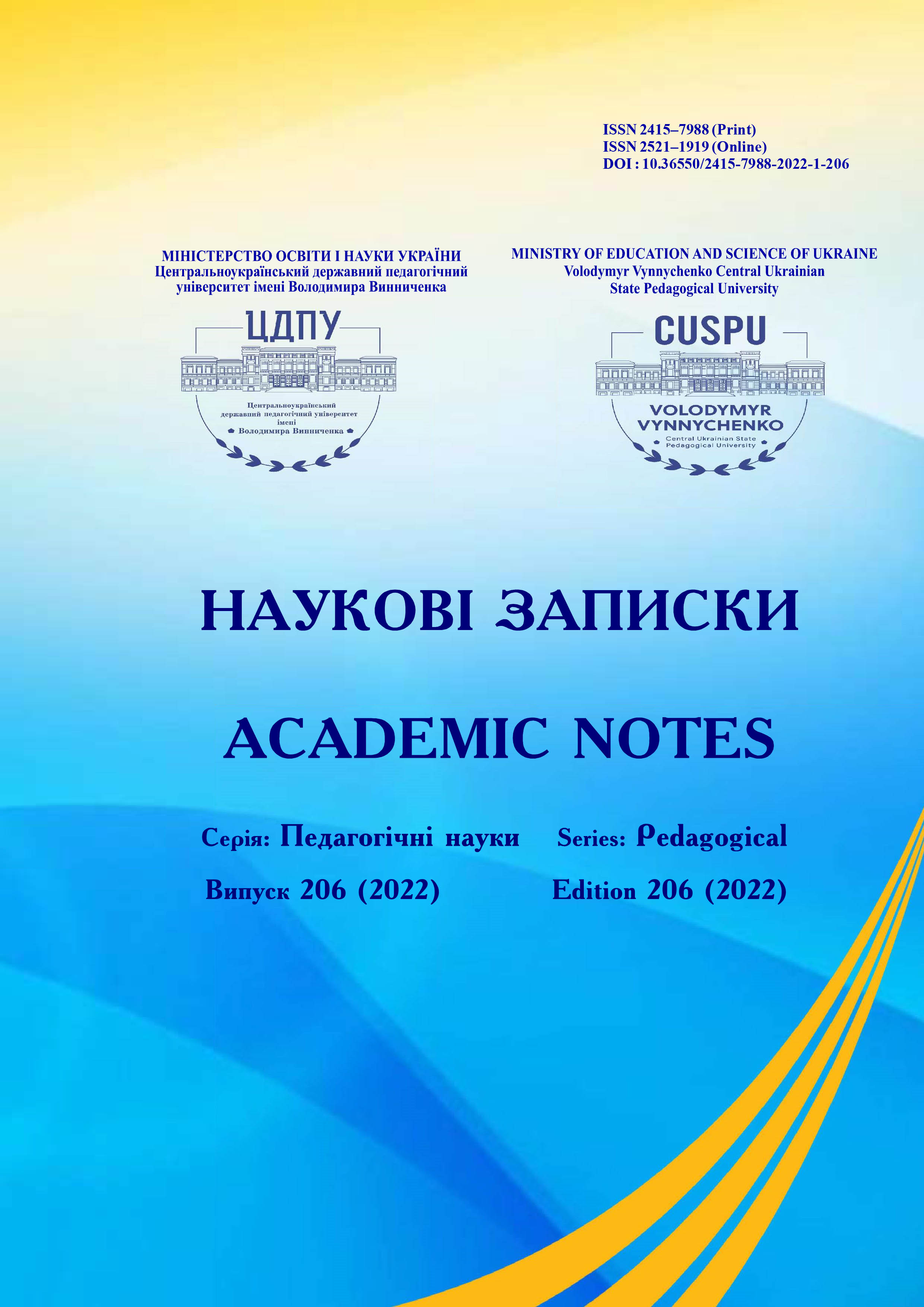 № 206 (2022)«Наукові записки. Серія: Педагогічні науки» включено до Переліку наукових фахових видань України категорії «Б» (галузь знань: Освіта/Педагогіка), згідно з Наказом Міністерства освіти і науки України № 886 від 02.07.2020.