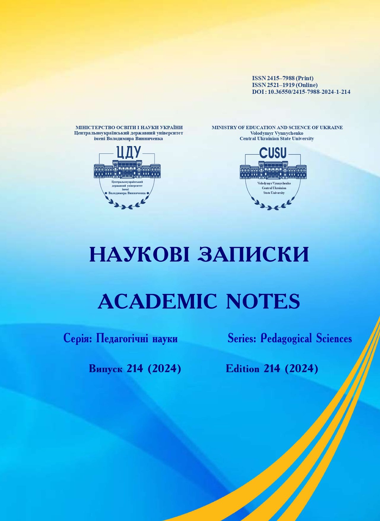 № 222 (2026)«Наукові записки. Серія: Педагогічні науки» включено до Переліку наукових фахових видань України категорії «Б» (галузь знань: Освіта/Педагогіка), згідно з Наказом Міністерства освіти і науки України № 886 від 02.07.2020.