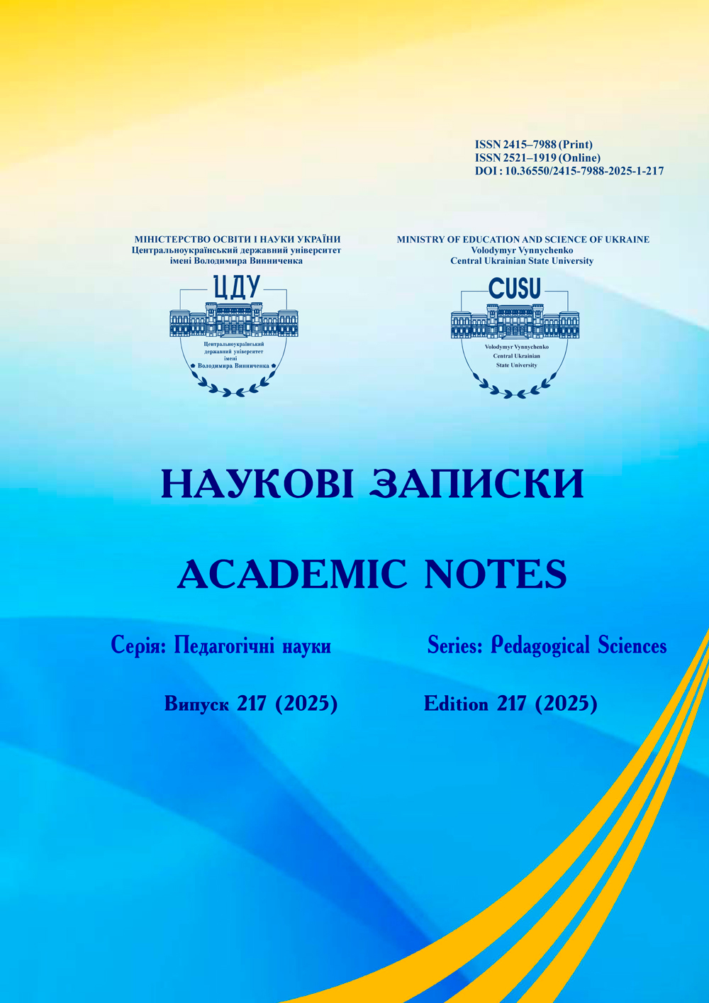 № 217 (2025)«Наукові записки. Серія: Педагогічні науки» включено до Переліку наукових фахових видань України категорії «Б» (галузь знань: Освіта/Педагогіка), згідно з Наказом Міністерства освіти і науки України № 886 від 02.07.2020.